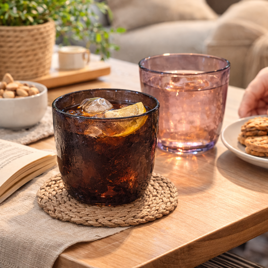 طقم كوبايات زجاج مصنفر ملون 6 قطع بسعة 220 ملي