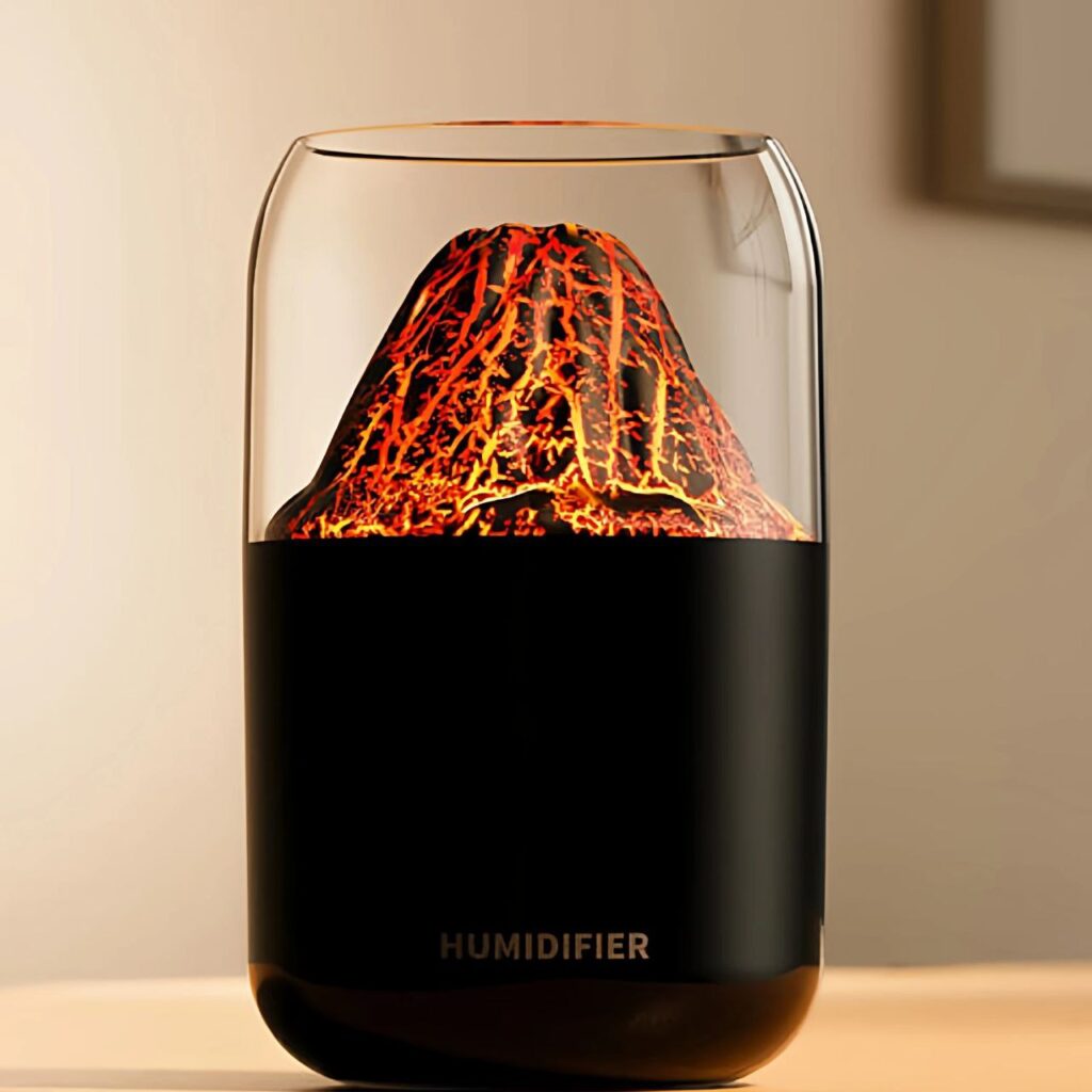 فواحة مضيئة بتصميم بركان بوضعين رذاذ لتعطير المنزل والسيارة بسعة خزان 300 ملي