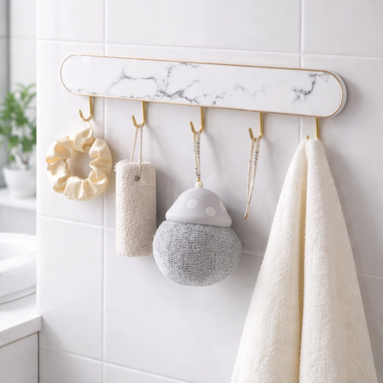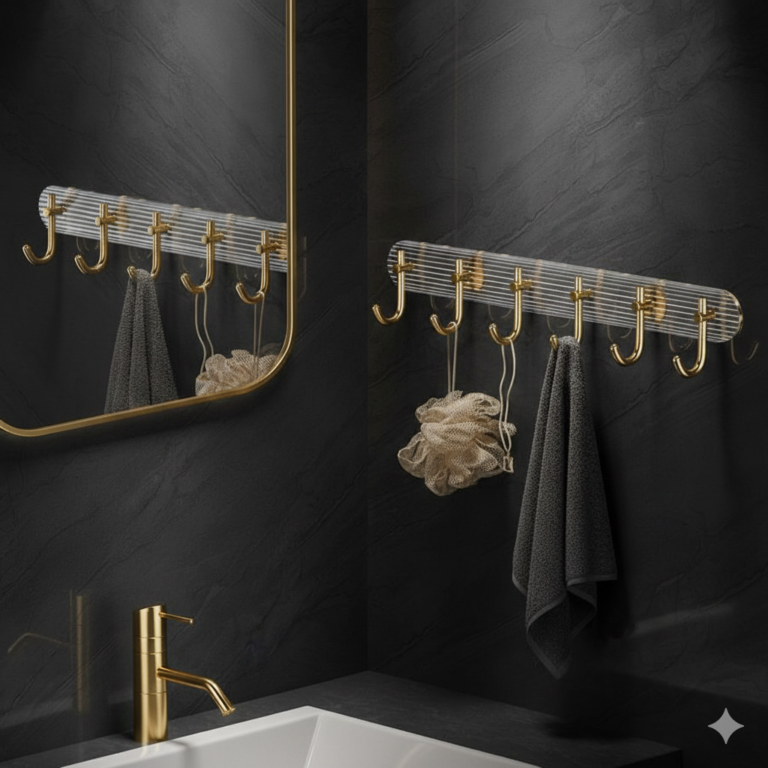 شماعة حوائط اكليريك بلزق دبل فيس ب 6 هوك جولد لتعليق الملابس والأدوات