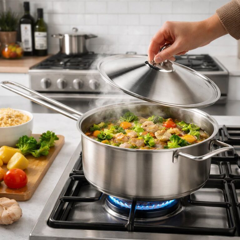 كسرولة استانلس ستيل تركي بغطاء ويد لسهولة الحمل مقاس 22سم