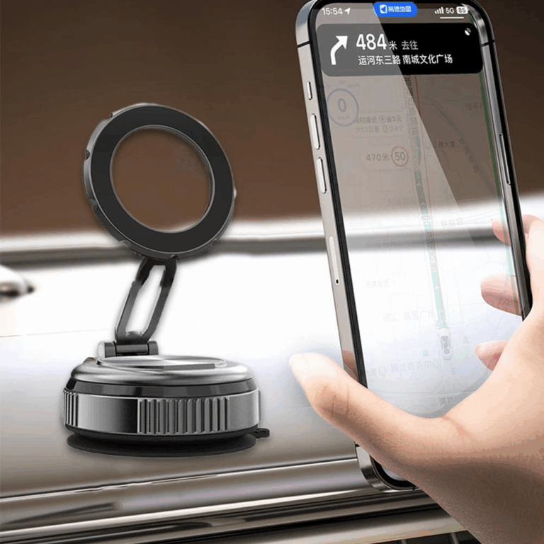 حامل موبايل مغناطيسي معدني قابل للطي والدوران 360 درجة بقوة شفط عالية