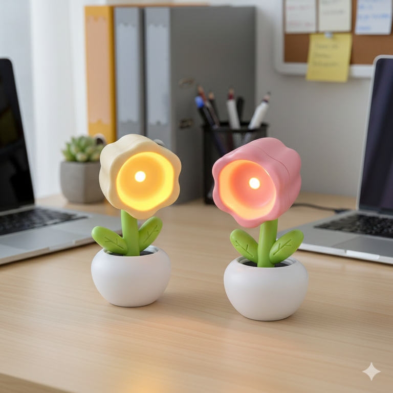 كشاف ووناسة ميني شكل وردة برأس متحركة للمكتب يعمل بالبطارية