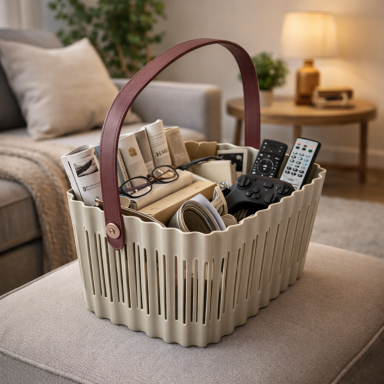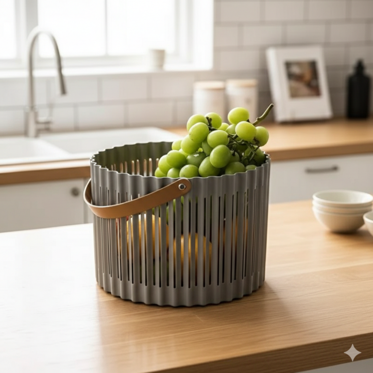 باسكت غسيل صغير بتصميم مفرغ مزود بيد جلد لسهولة الحمل