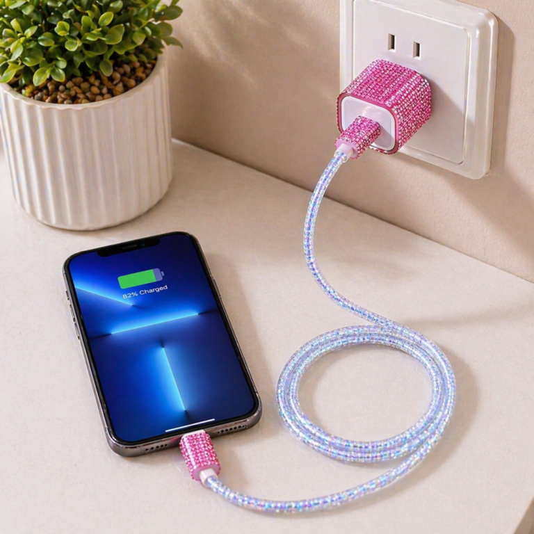 كفر حماية لشاحن وكابل وسلك الايفون تصميم جليتر لامع _ 5 قطع
