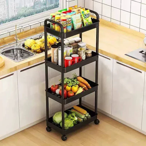 عربة تخزين ومنظم 4 أدوار بعجلات لسهولة الحركة لتنظيم أدوات المطبخ والحمام
