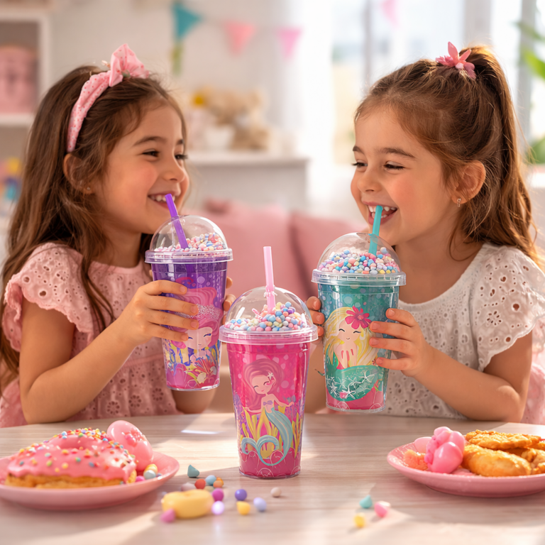 مج اكليريك 400 مللي بشاليموه مناسب للمشروبات المثلجة مزين باشكال كرتونية