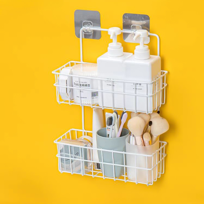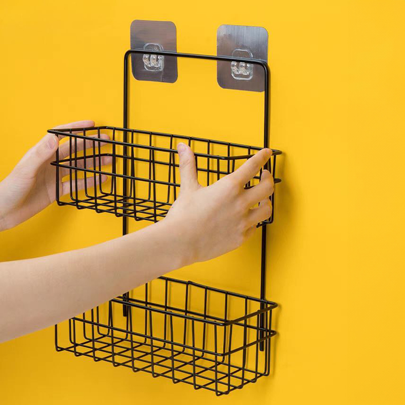 استاند معدني 2 دور لحمل وتنظيم ادوات المطبخ والحمام بلزق دبل فيس قوي لسهولة التعليق