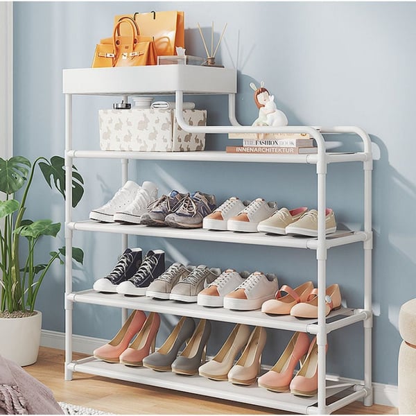استاند منظم للأحذية 4 أرفف مع رف علوي لديكور الليفنج والريسبشن والدريسنج عملي وسهل الفك والتركيب
