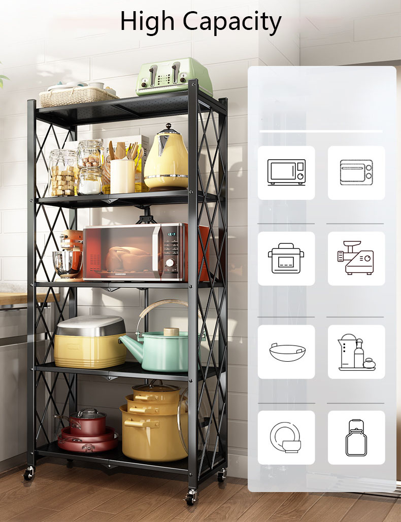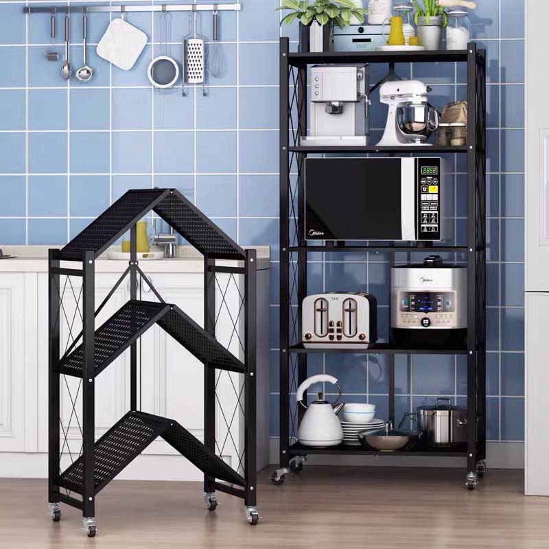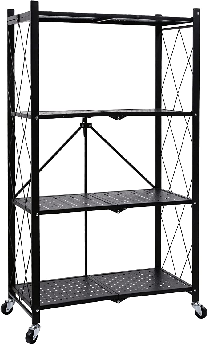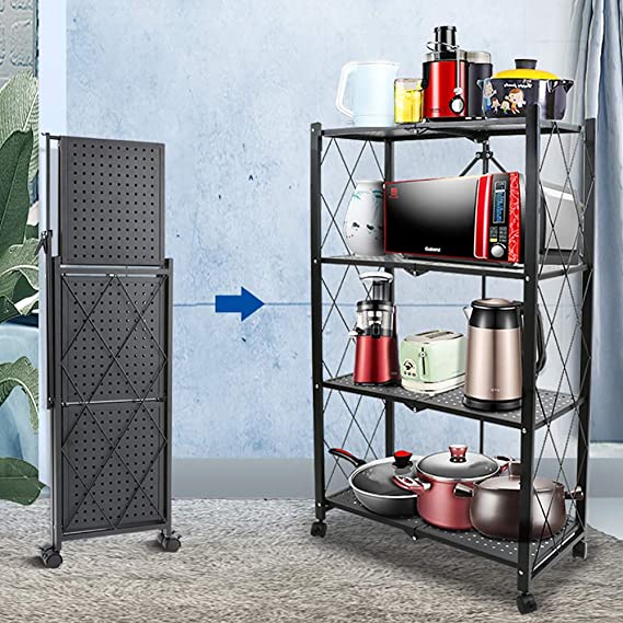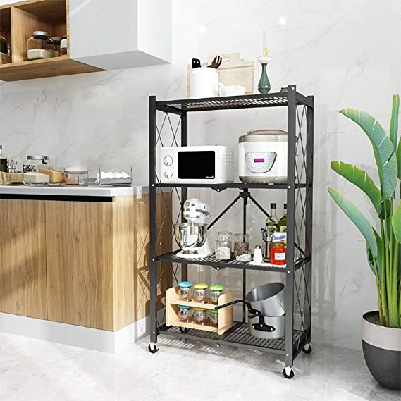 استاند منظم 4 رفوف قابل للطي بعجل لسهولة الحركة للمطبخ والحمام معدن