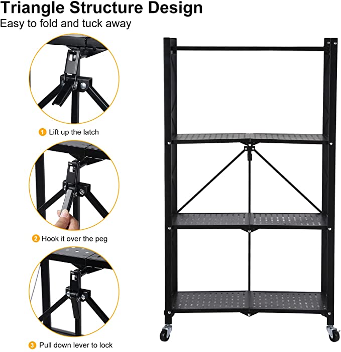 يتكون من ٤ رفوف معدن غير قابل للصدا وقابل للطي لسهولة التخزين