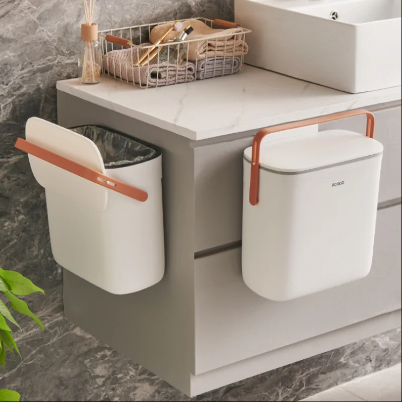 باسكت قمامة يعلق علي الدرف لتوفير مساحة للمطابخ والحمامات بلزق دبل فيس قوي وغطاء ويد من ايكوكو