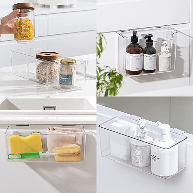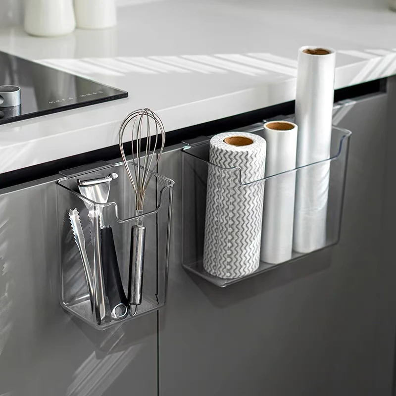 باسكت منظم وحامل لادوات المطبخ وعلب التوابل والمناديل يعلق علي درف المطبخ اكليريك شفاف