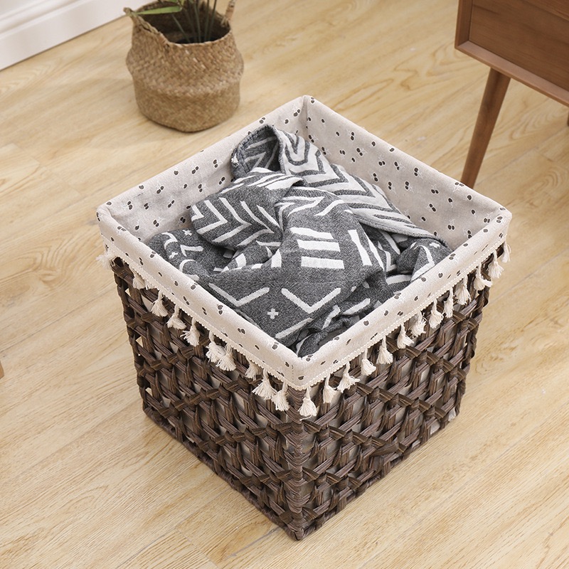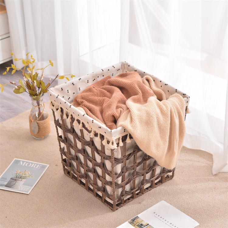 باسكت هاند ميد ببطانه كتان لحمل وتنظيم الملابس والميكب وادوات العناية بالشعر والبشرة