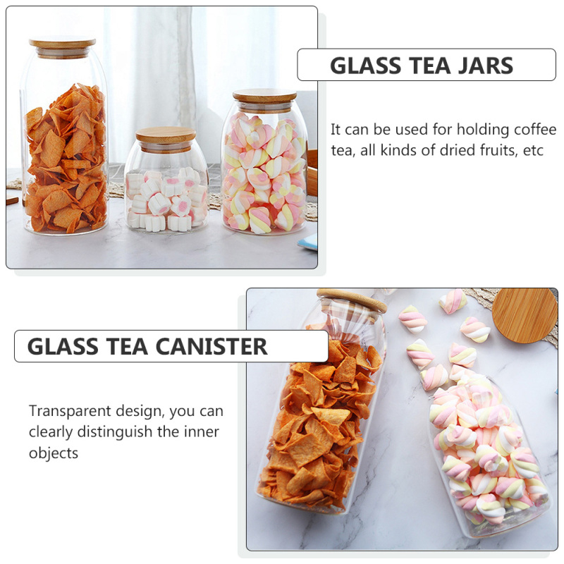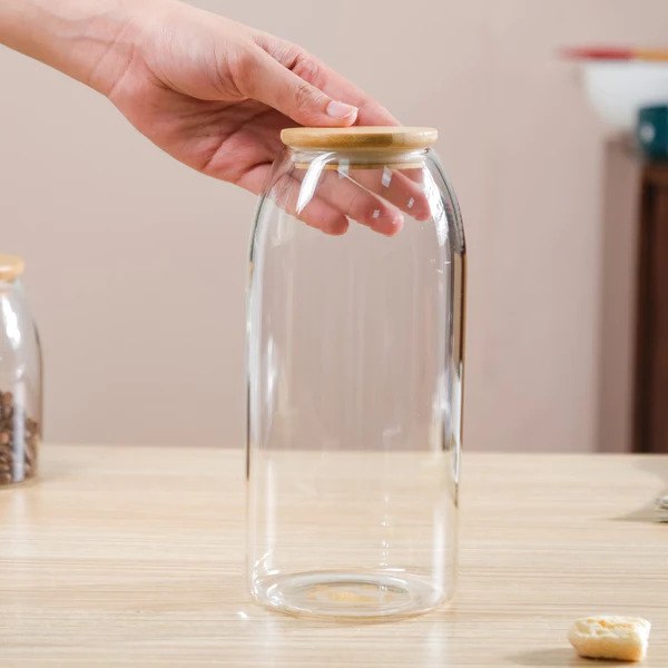 برطمان بيضاوي لتر زجاج غطاء خشب محكم الغلق لحفظ وتنظيم البقوليات والمكسرات والكورن فليكس والمارشميلو