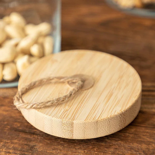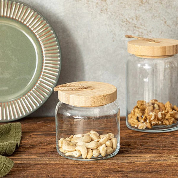 برطمان زجاج غطاء خشب ويد خيط الجوت لحفظ وتخزين البقوليات والمكسرات والكورن فليكس
