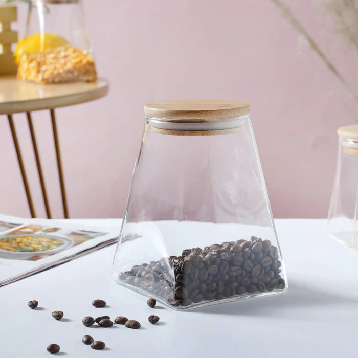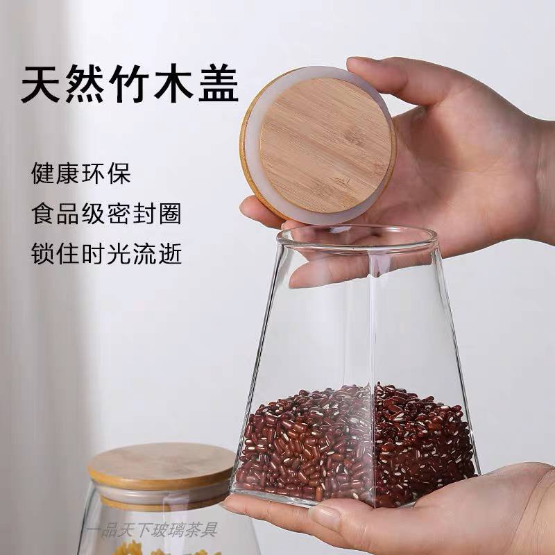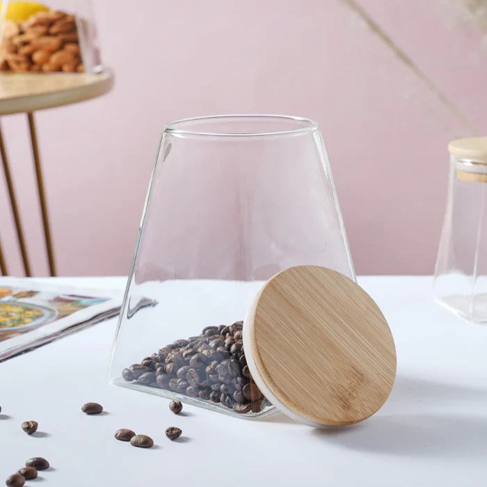 برطمان زجاج غطاء خشب 500 ملي لحفظ وتنظيم ادوات المطبخ والإكسسوارات والميكب