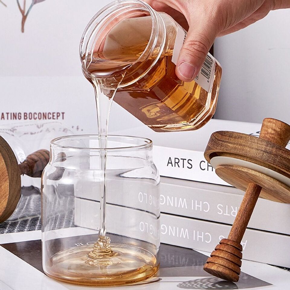 برطمان زجاج 300 ملي للعسل بغطاء خشبي محكم الغلق