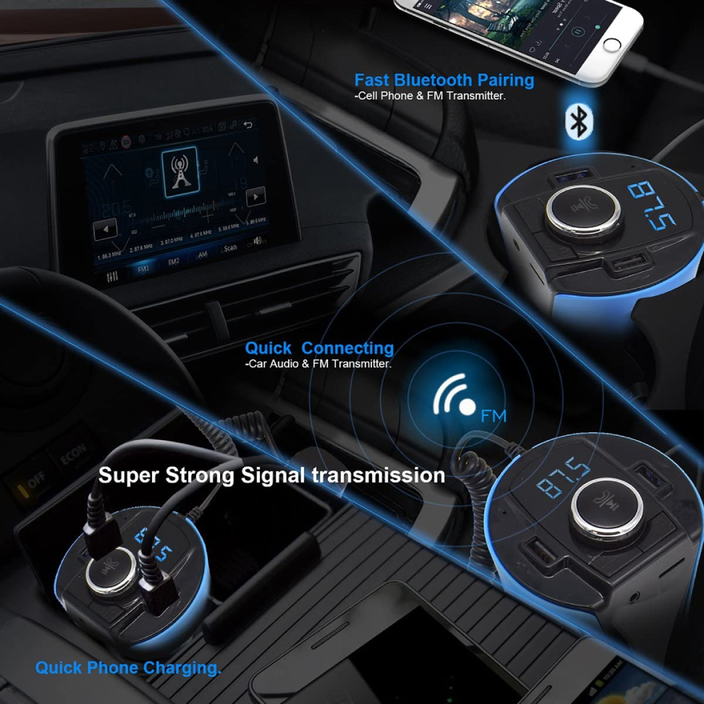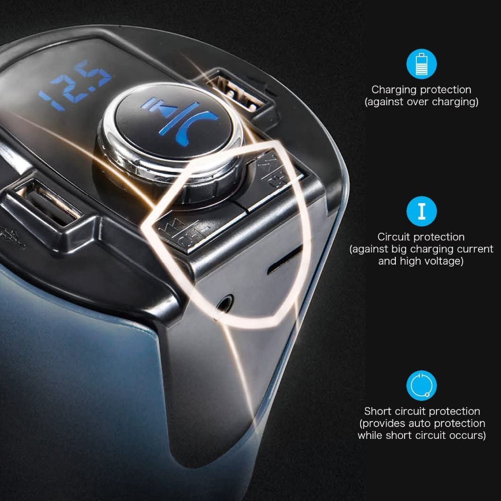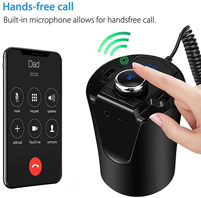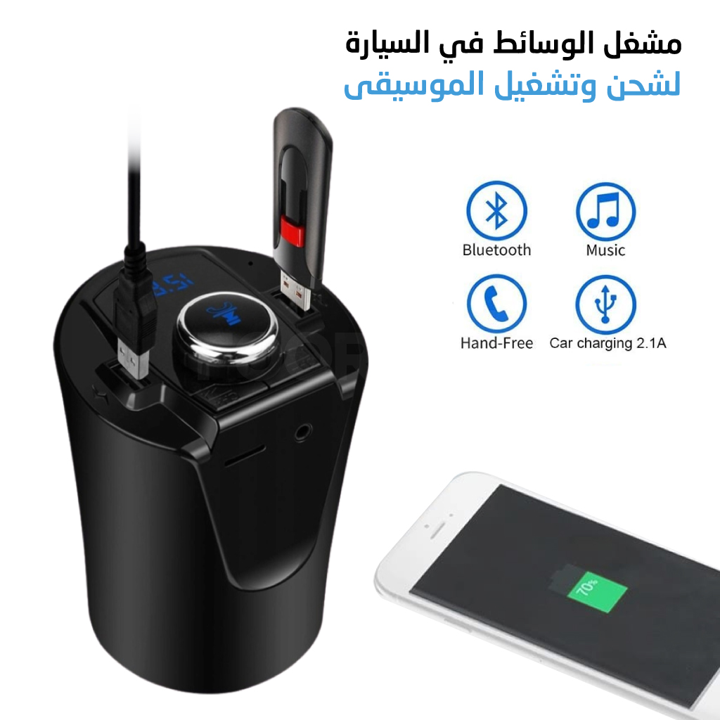 شاحن ثنائي للسيارة وأم بي ثري ببلوتوث وشاشة لعمل المكالمات والاستماع بالأغاني