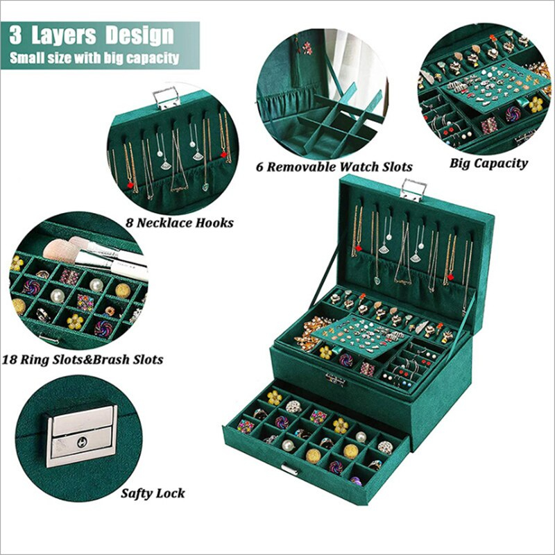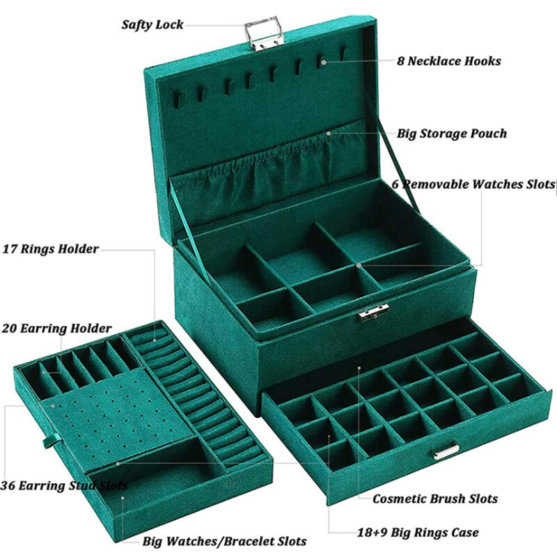 صندوق تنظيم المجوهرات والإكسسوارات الكبير والأنيق