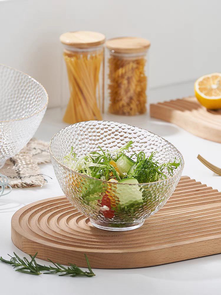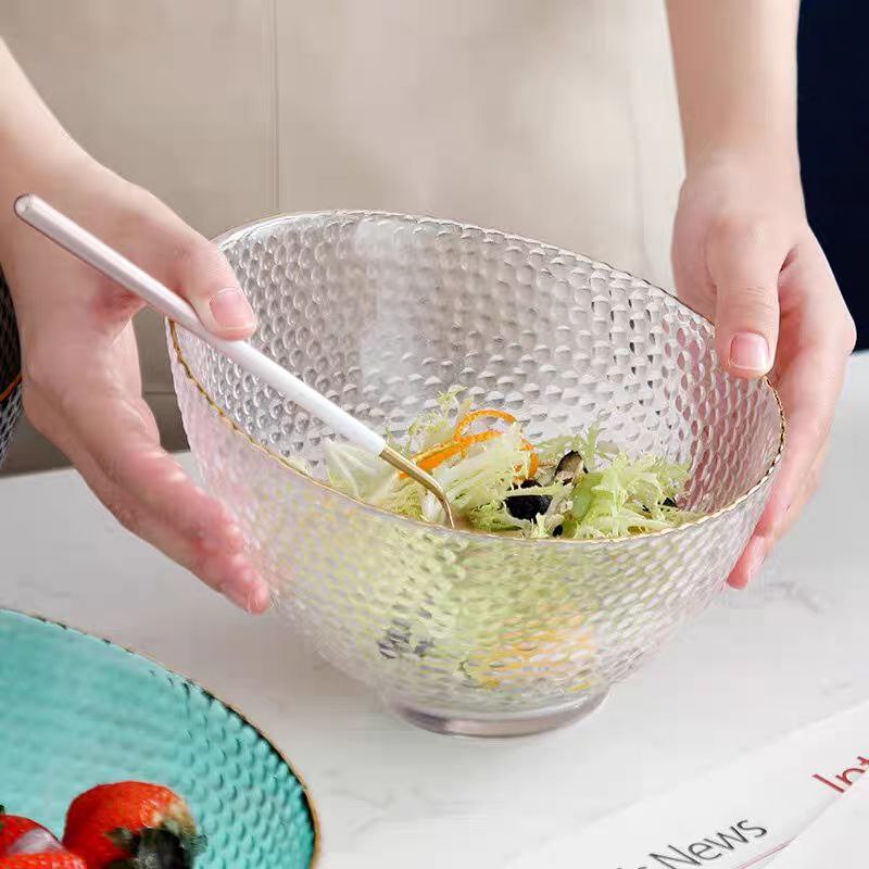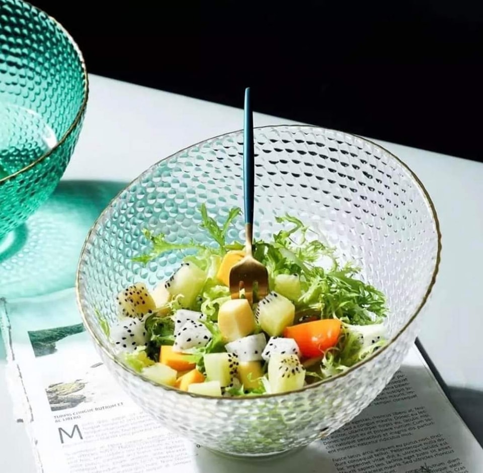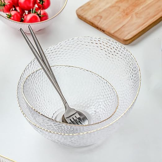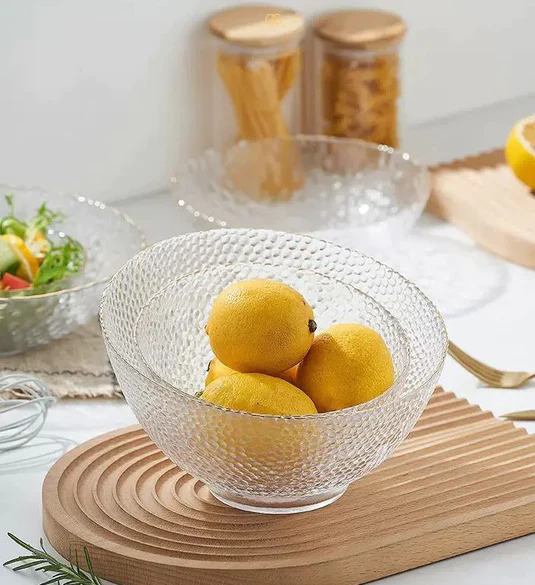 طقم اطباق اكليريك شفاف 3 قطع بمقاسات مختلفة لحمل وتقديم السلطات والفواكه علي السفرة بشكل شيك