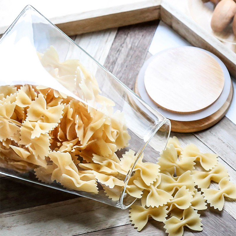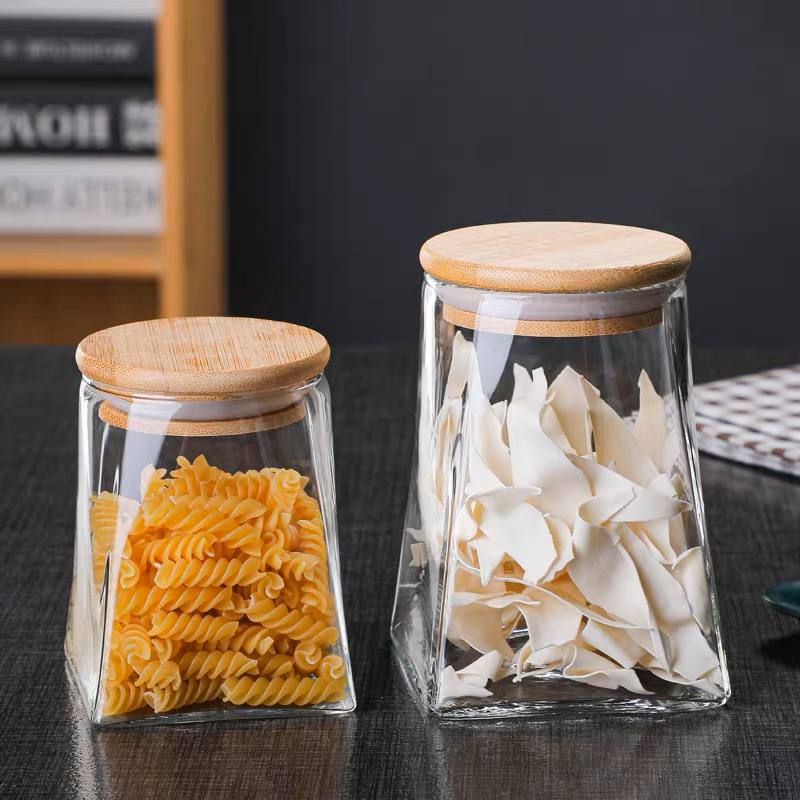 طقم برطمانات زجاج قطعتين لحفظ وتنظيم الشاي والسكر والقهوة مقاسات مختلفه غطاء خشب محكم الغلق
