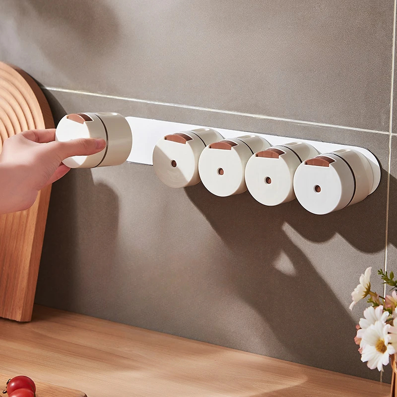 طقم توابل مغناطيسي بحامل يثبت علي الحائط بلزق دبل فيس قوي مرفق معه