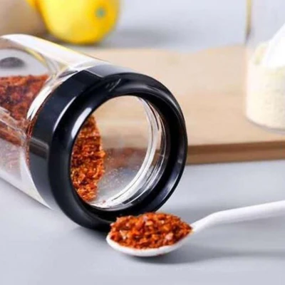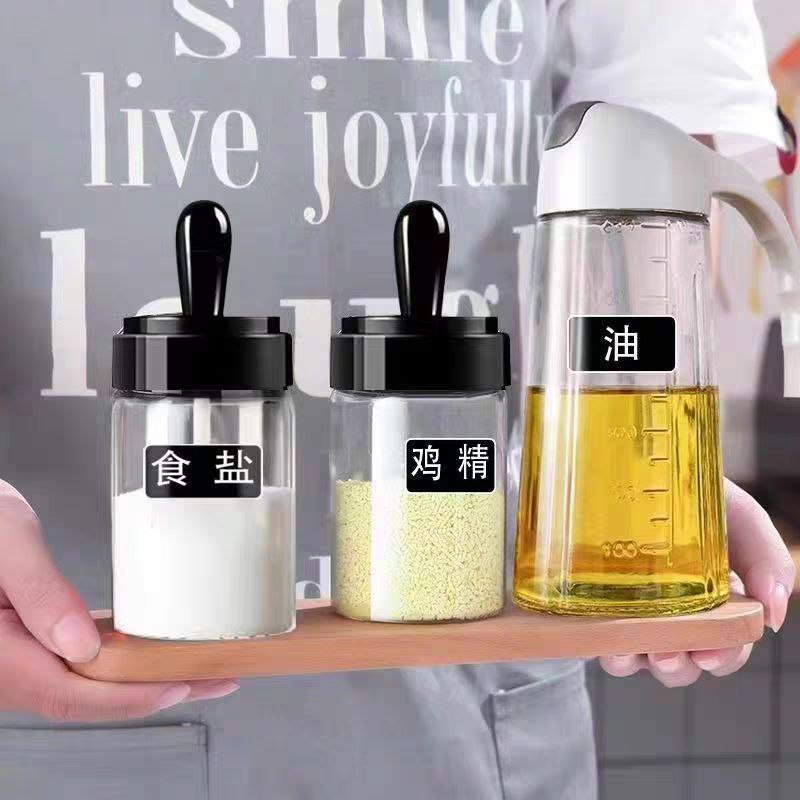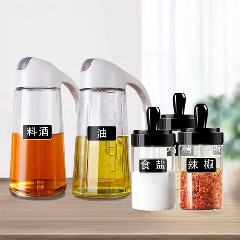طقم زياته زجاج قطعتين مع 3 قطع برطمانات توابل للمطبخ