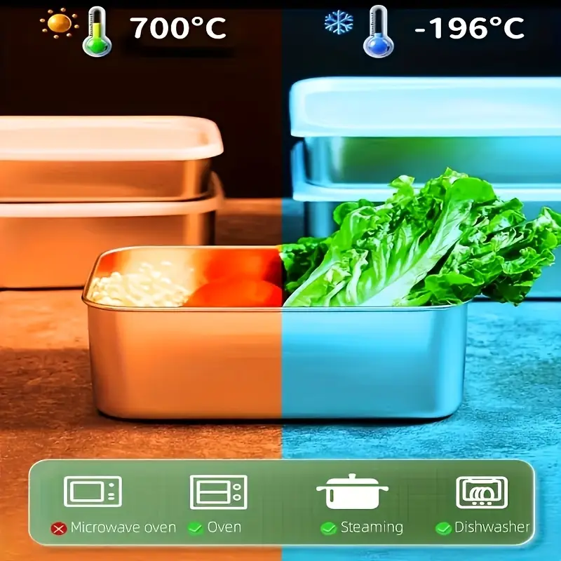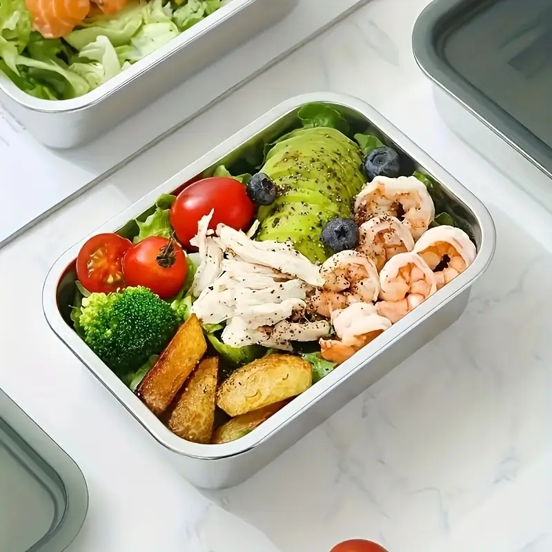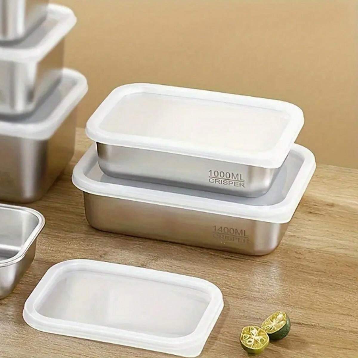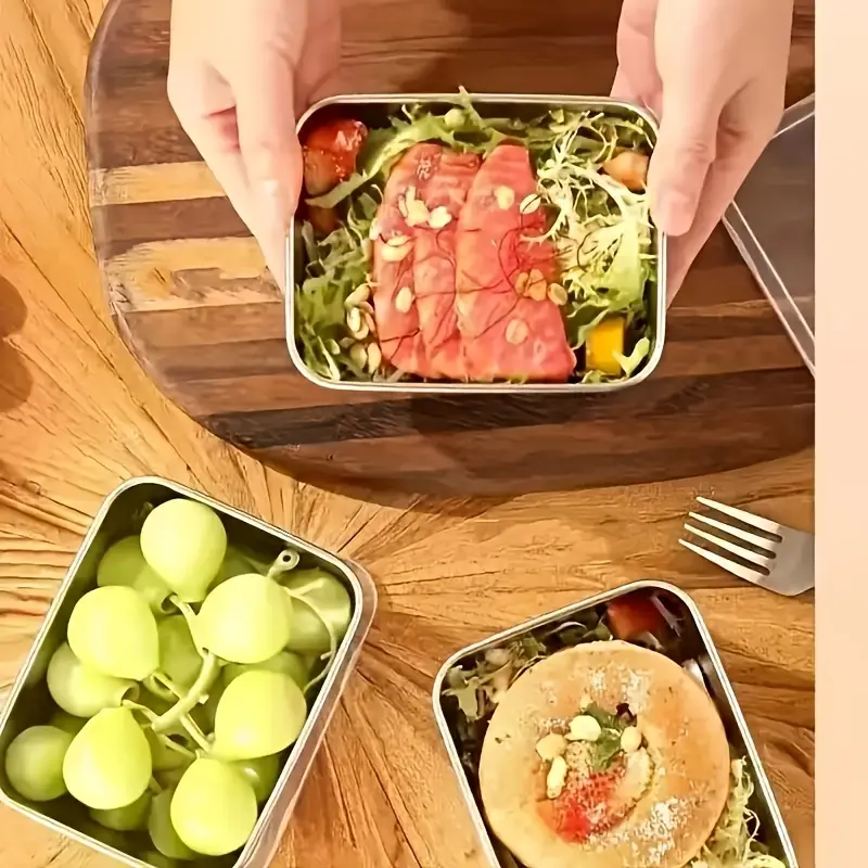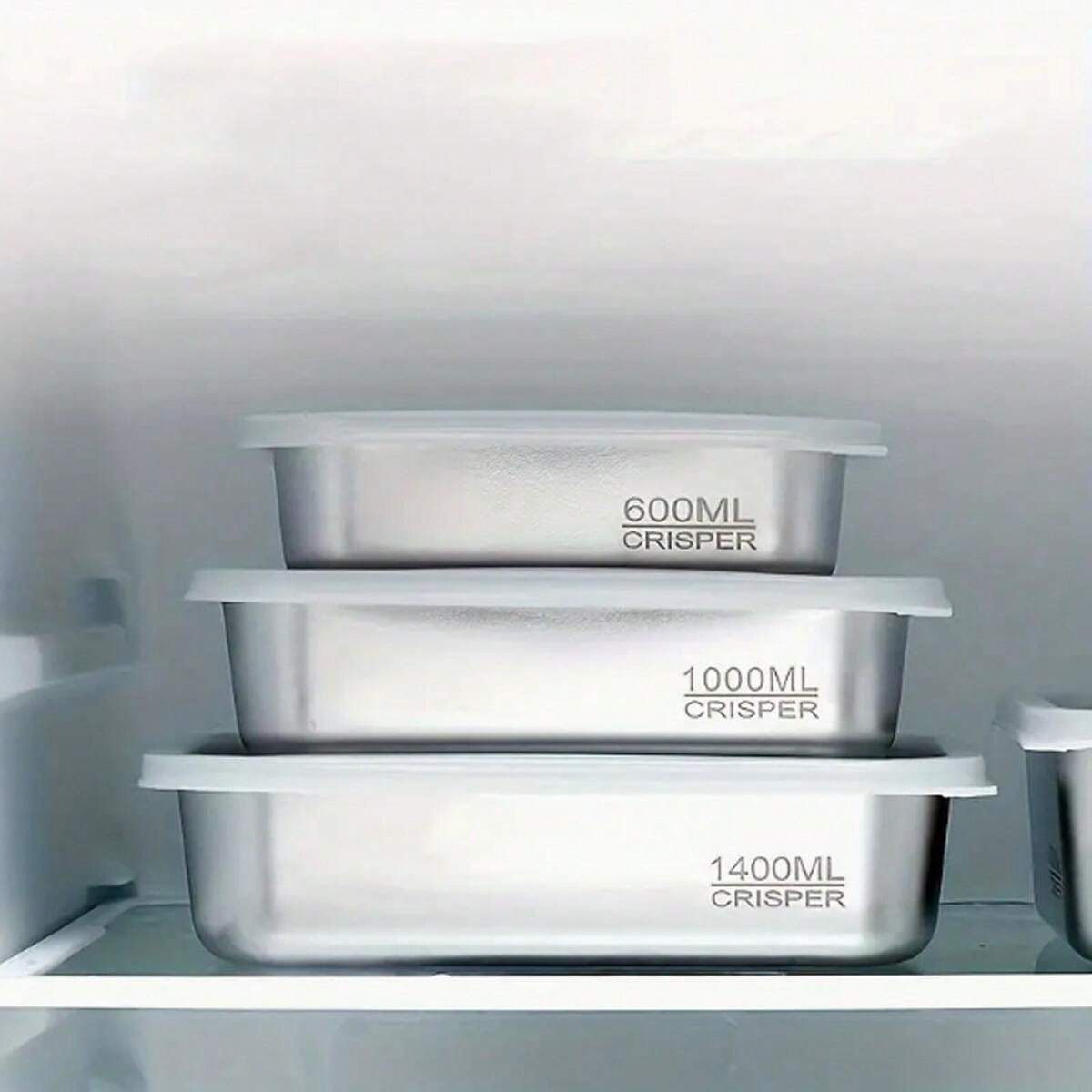 طقم علب ثلاجة ستانلس ستيل 3 قطع بمقاسات مختلفة بغطاء محكم الغلق لحفظ الطعام