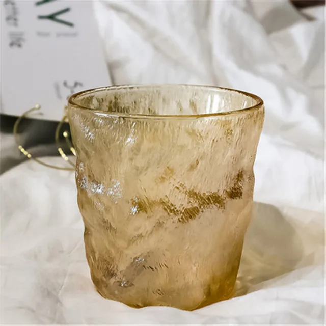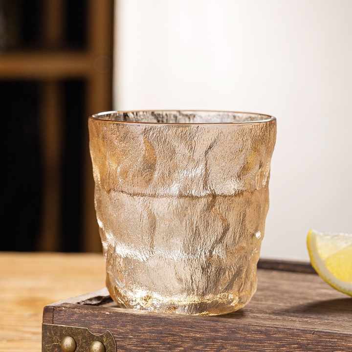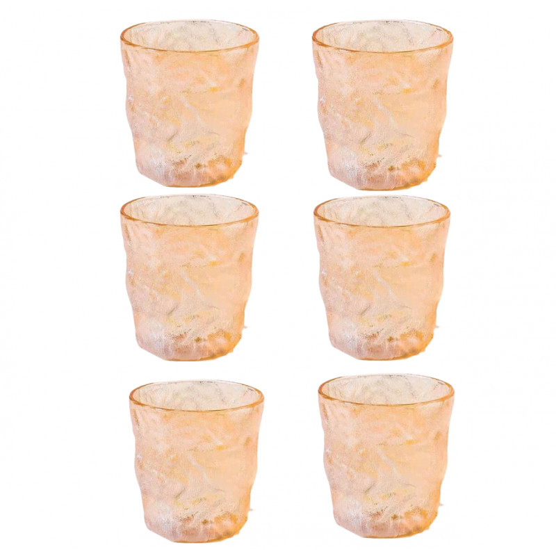 طقم كوبايات 6 قطع زجاج كريستال منقرش باللون العسلي لشرب وتقديم المشروبات الباردة والساخنة للضيوف بشكل شيك