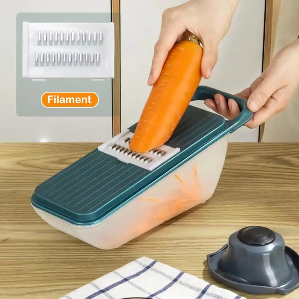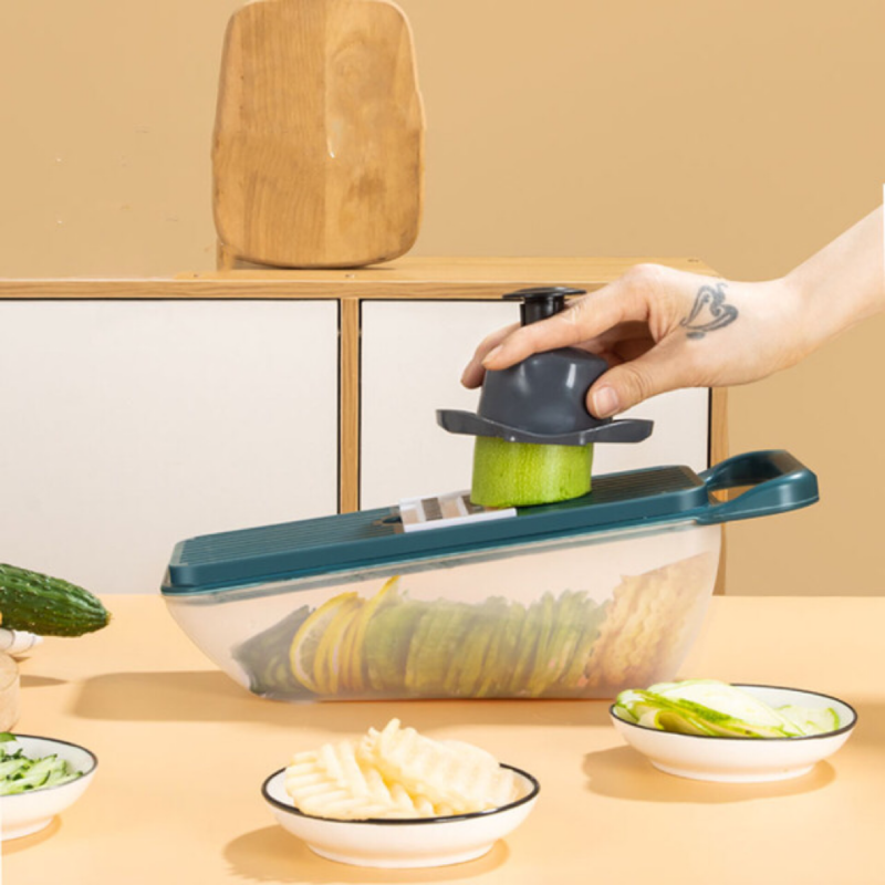 قطاعة ومبشرة بعلبة للخضراوات كالبطاطس والخيار والفواكه والجبن والمشروم متعددة الاستخدام
