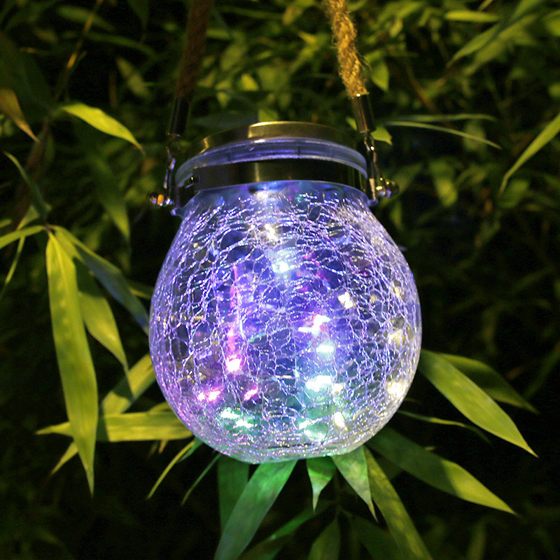 كرة زجاجية مضيئة بالوان مختلفة تعمل بالطاقة الشمسية لإضاءة وتزيين الحدائق