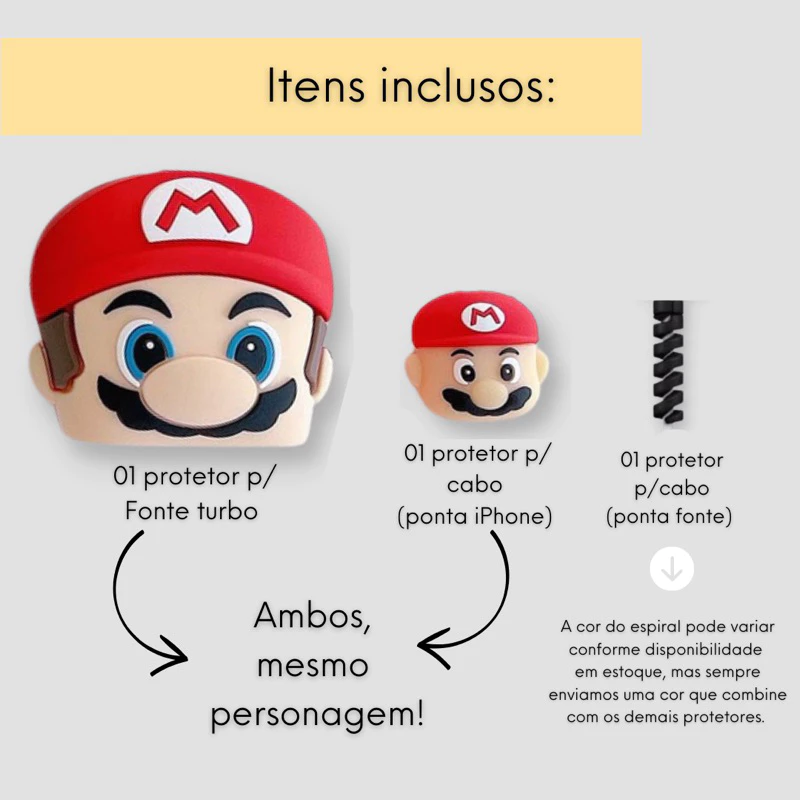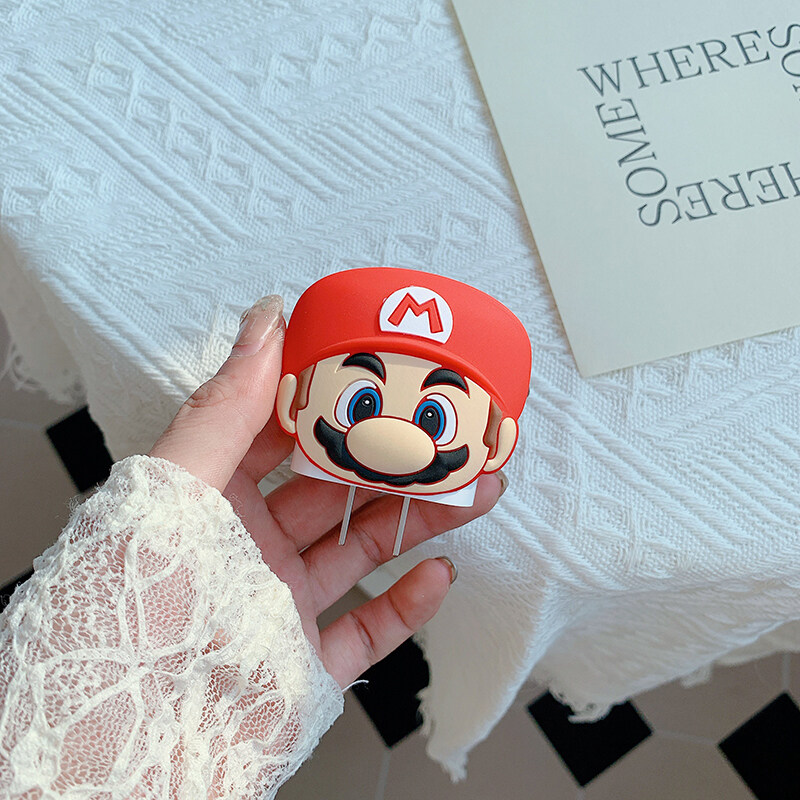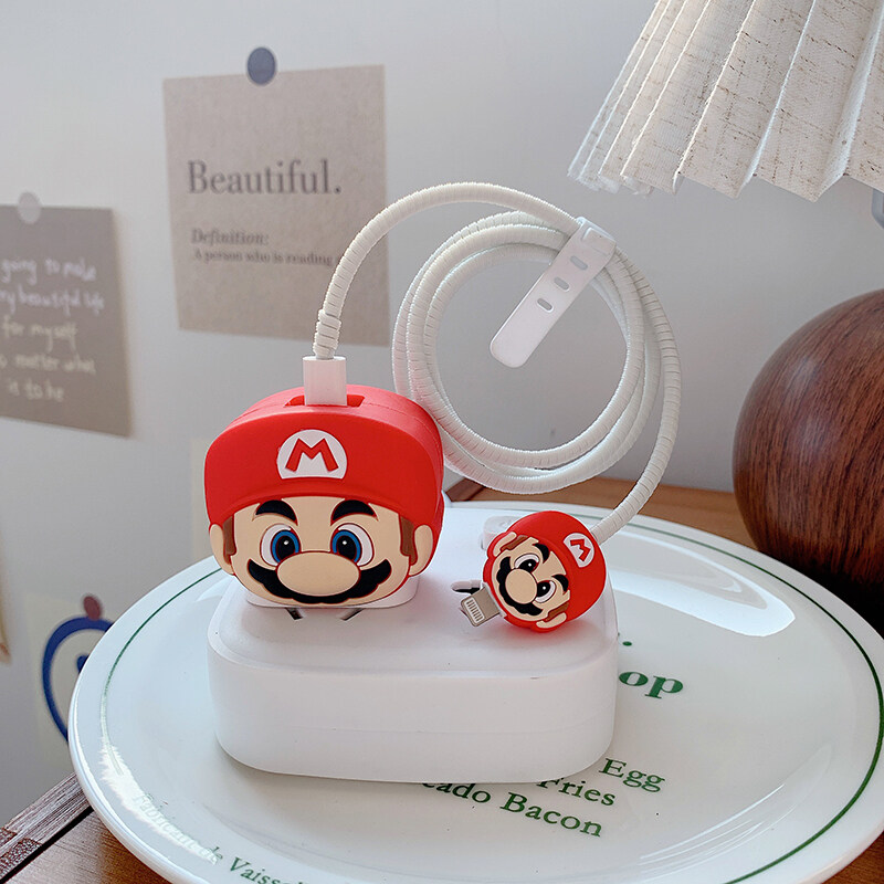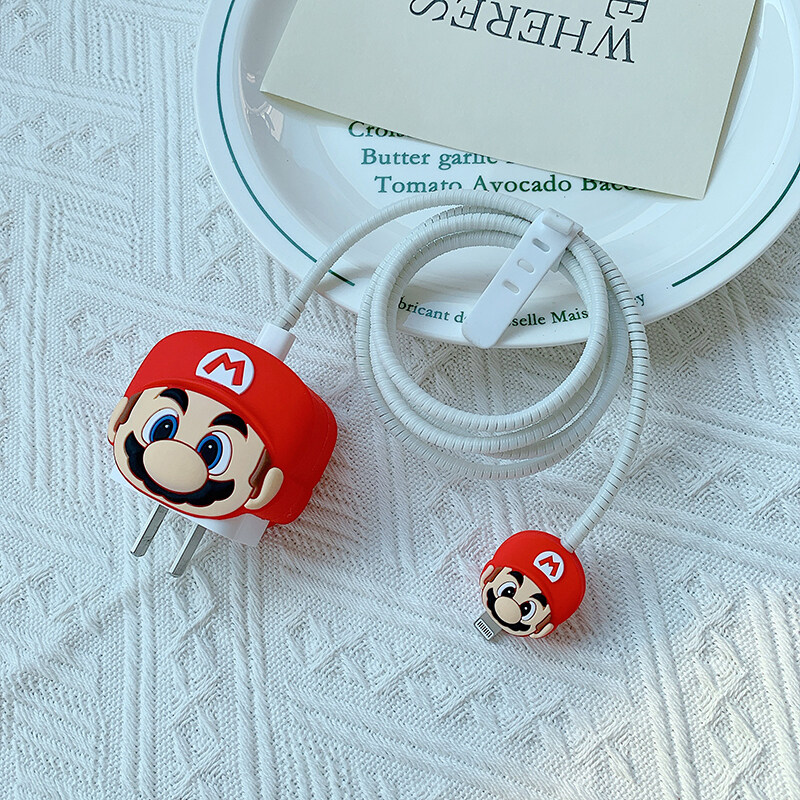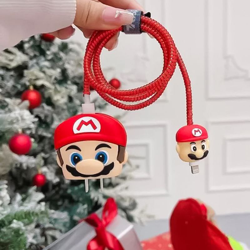 كفر حماية لشاحن وكابل وسلك الآيفون بتصميم سوبر ماريو _ 3 قطع