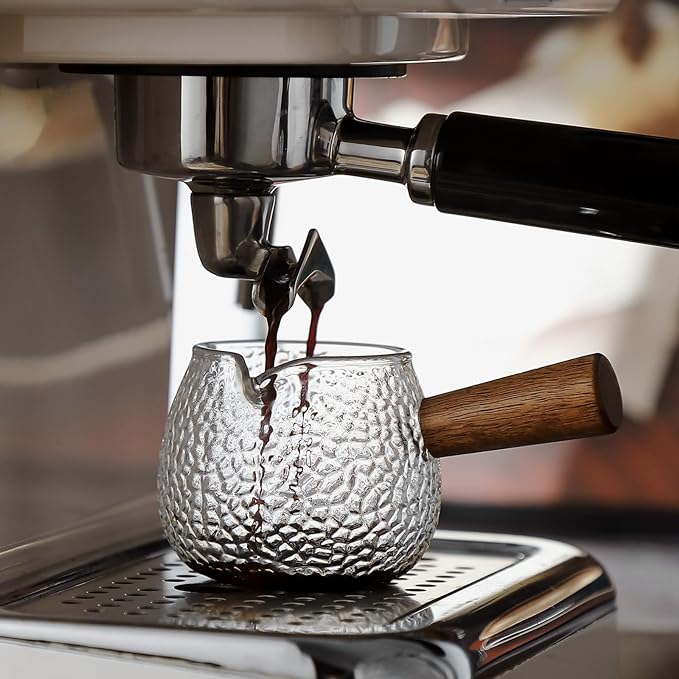 كوب شوت اسبريسو 150 ملي من الزجاج بيد خشب
