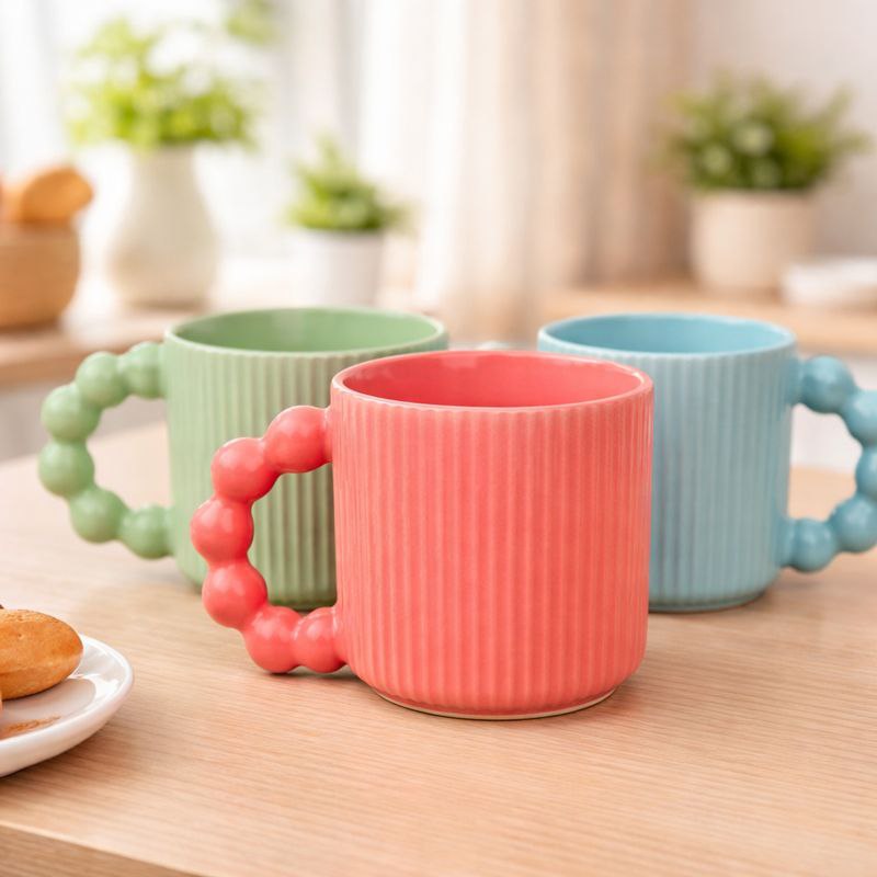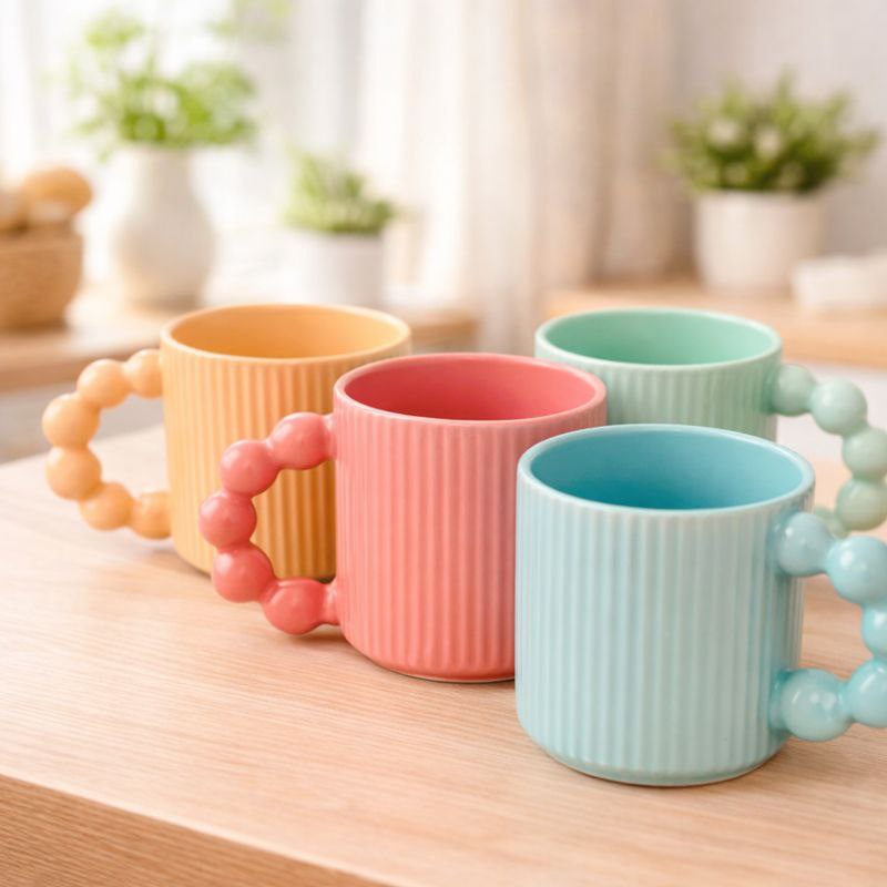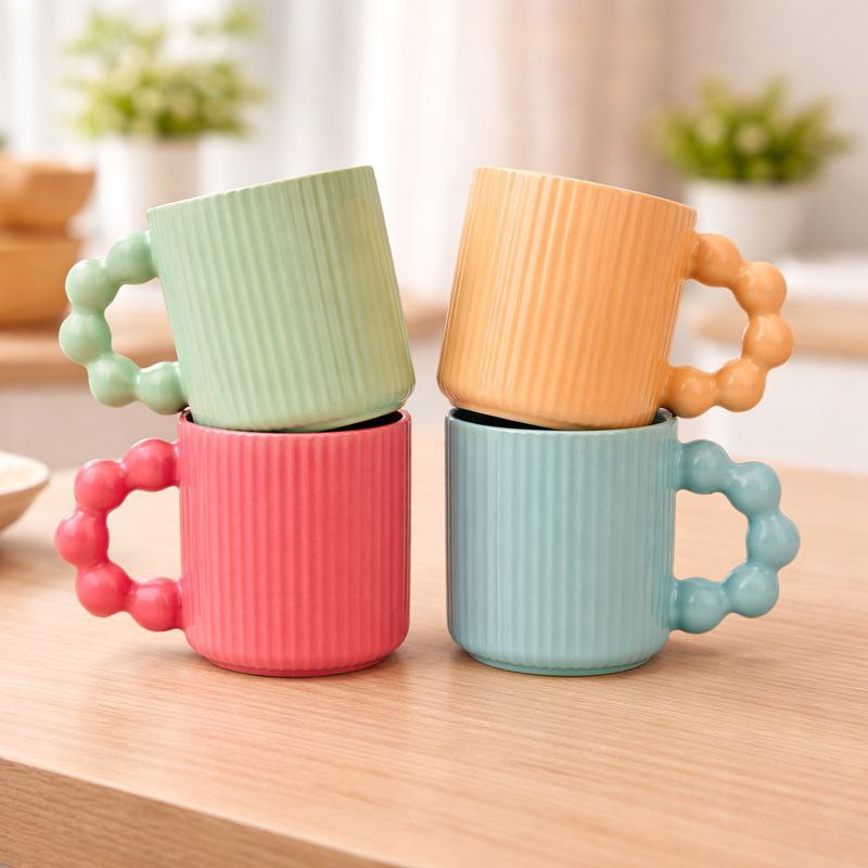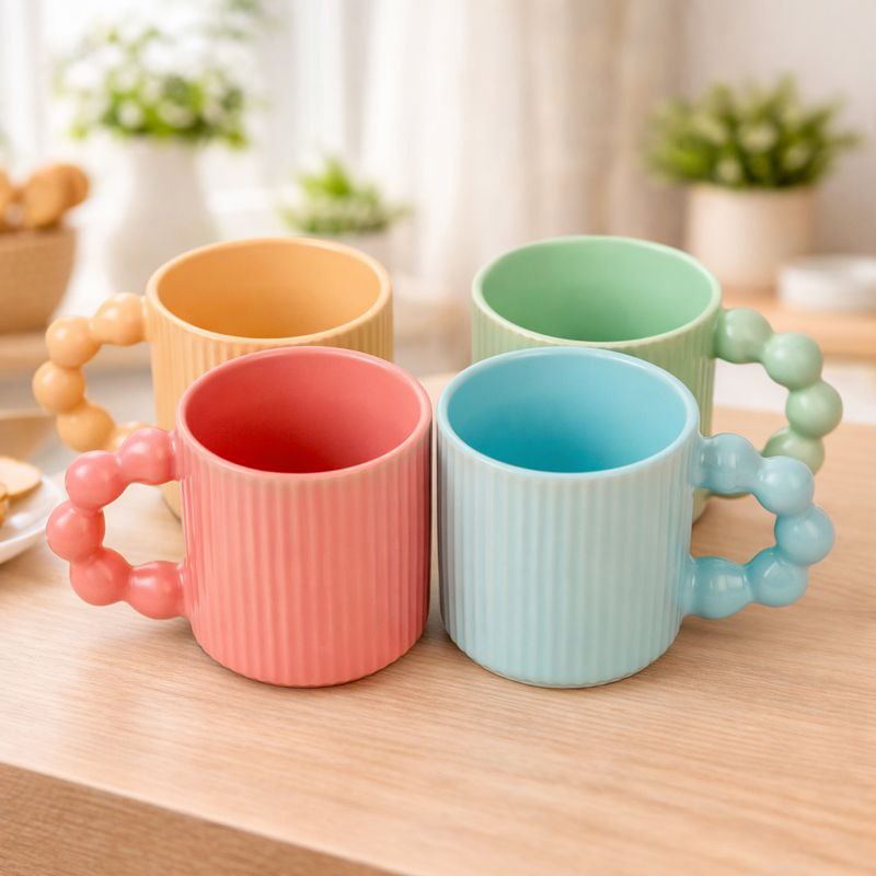 مج بورسلين بتصميم مموج ويد دائرية مناسب لشرب النسكافية والاتيه 350 ملي