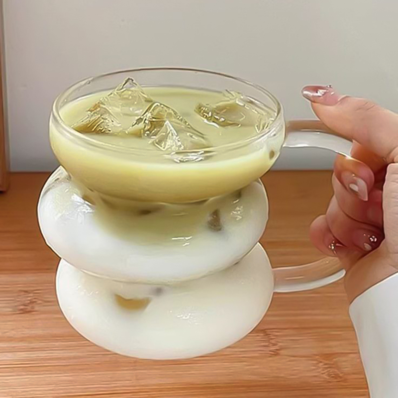 مج بومبيه 430 ملي بيد لشرب وتقديم العصائر والنسكافيه والايس كوفي من الزجاج الشفاف