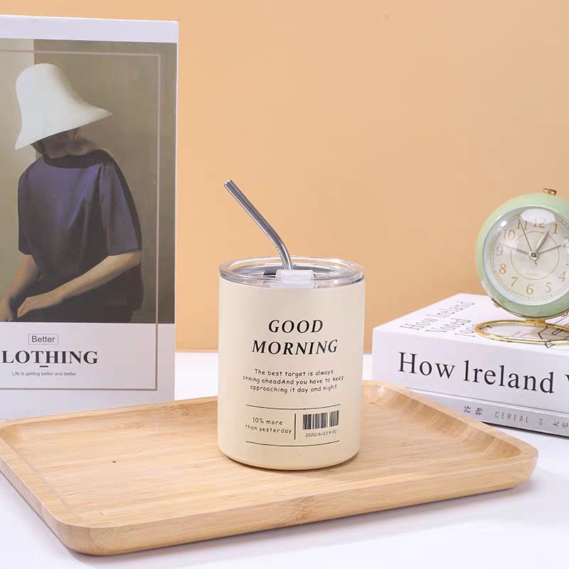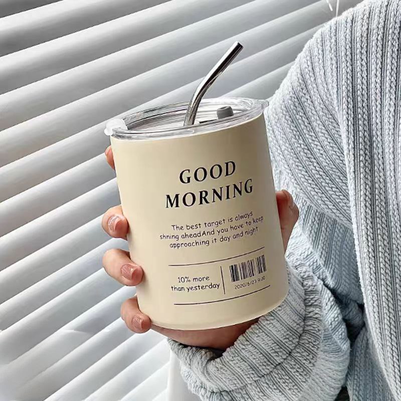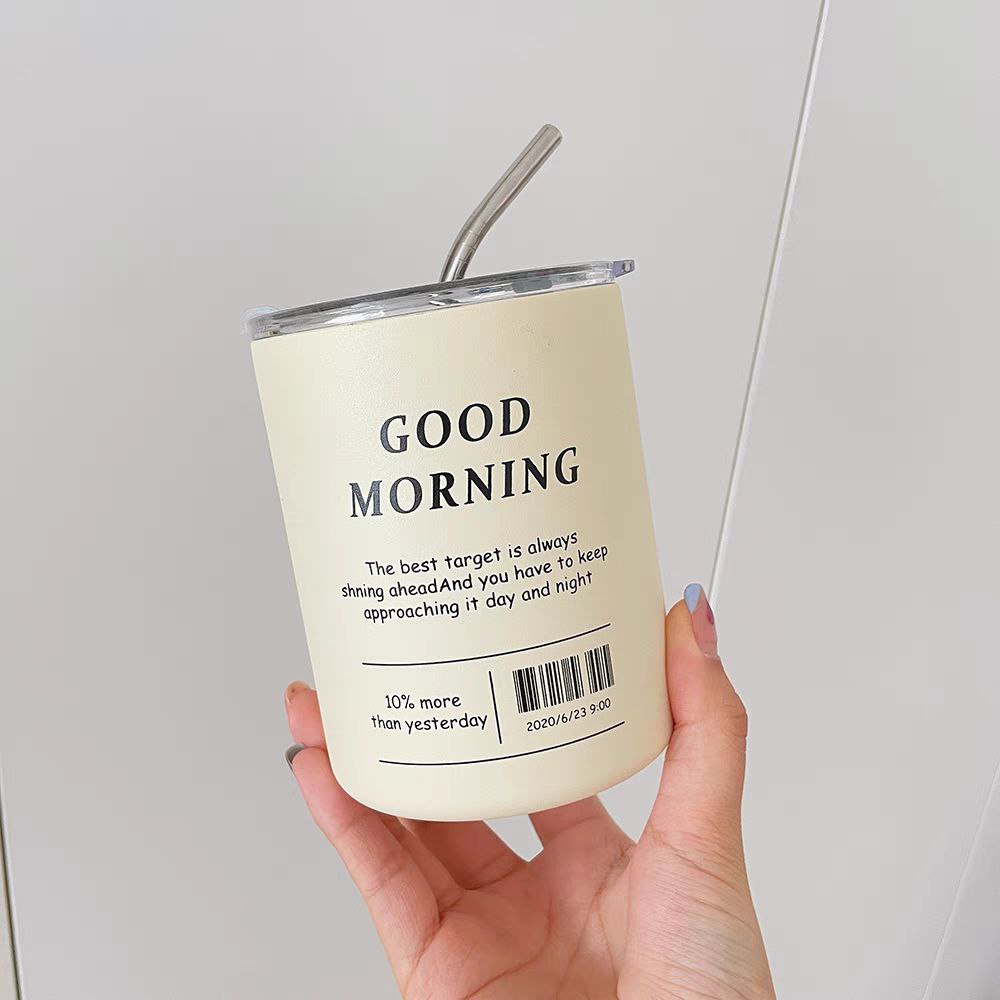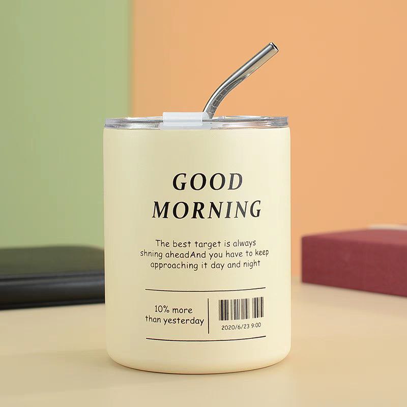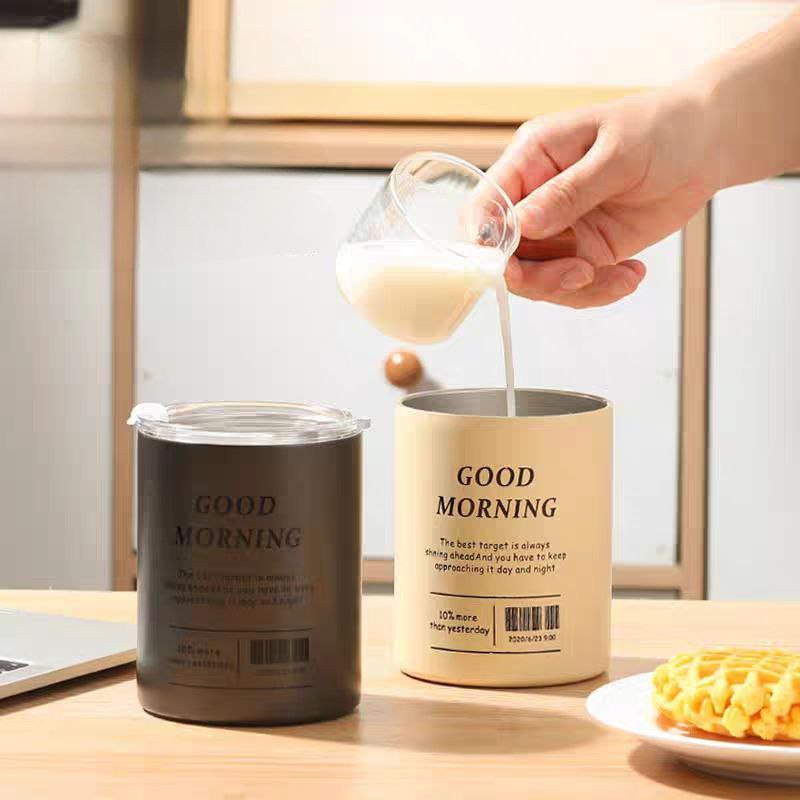 مج جود مورنينج حراري استانليس ستيل 350 ملي بطريقتين للشرب بغطاء محكم الغلق وشاليموه استانليس للخروج والجيم والسفر