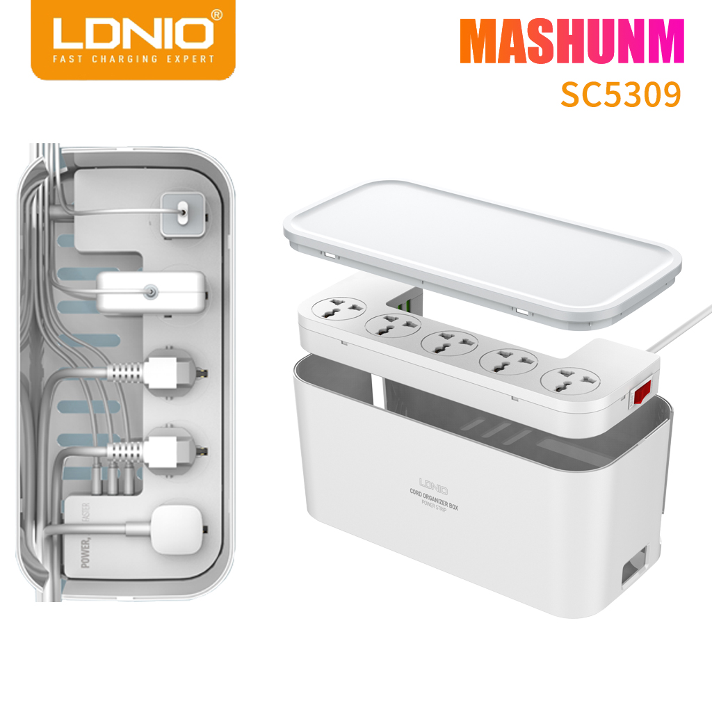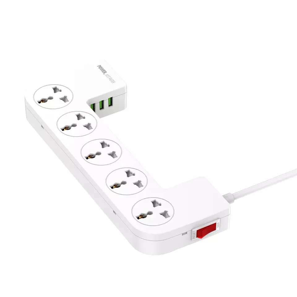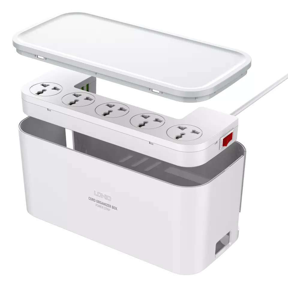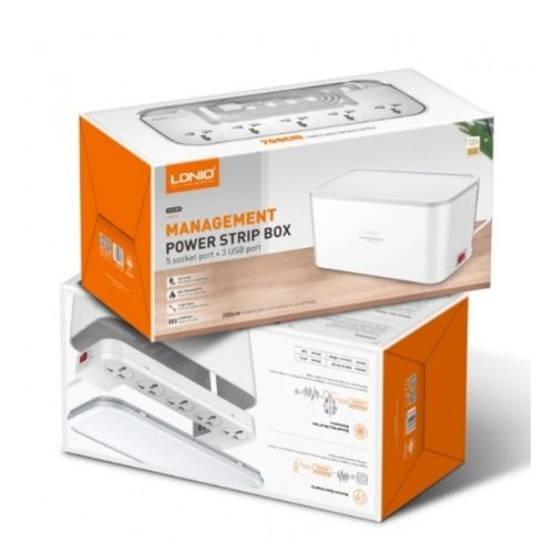 مشترك كهربائي 5 فيشة مع 3 منافذ يو اس بي ببوكس منظم للاسلاك وستاند للهواتف و الأجهزه