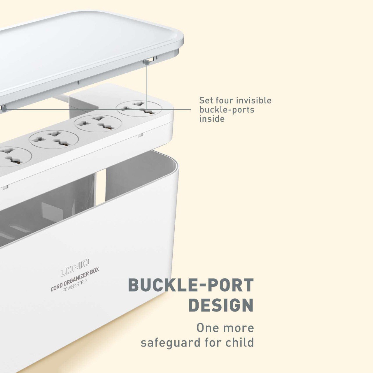 أمن علي الأطفال لوجود بوابه لكل منفذ كهربائي تغلق تلقائيا ومزود بزرار للتشغيل والغلق