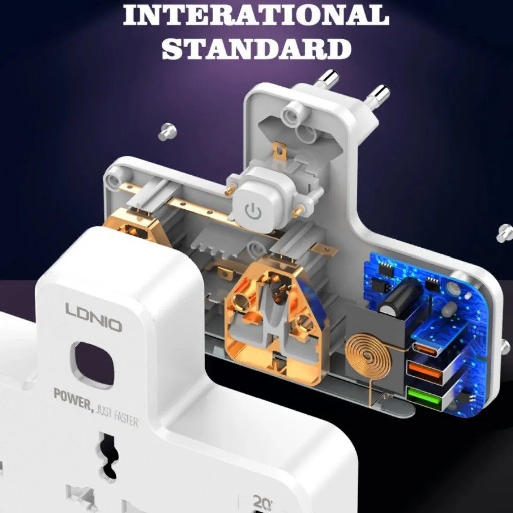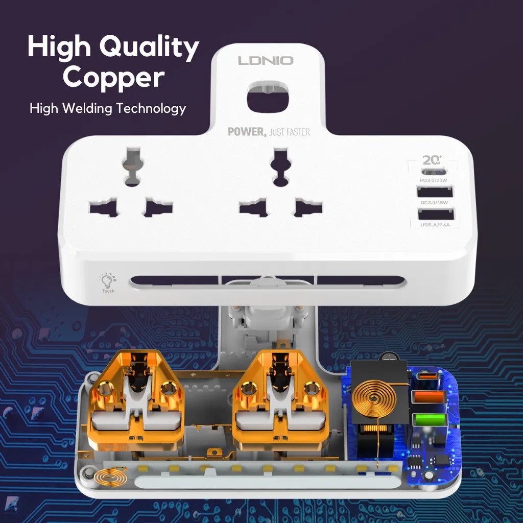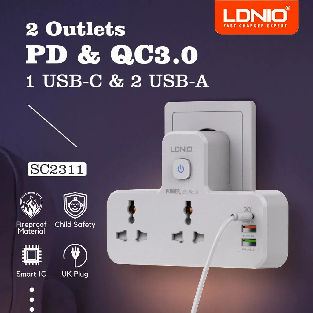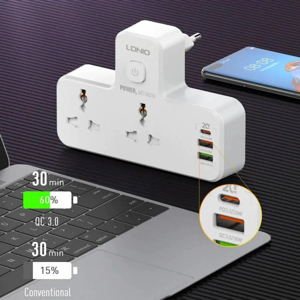 مشترك مضئ يتكون من 2 فيشة و منفذين يو اس بي ومنفذ تايب سي