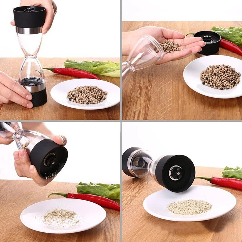مطحنة فلفل اسود وتوابل يدوية 2 في 1 من الزجاج عملية وسهلة الاستخدام والتنظيف