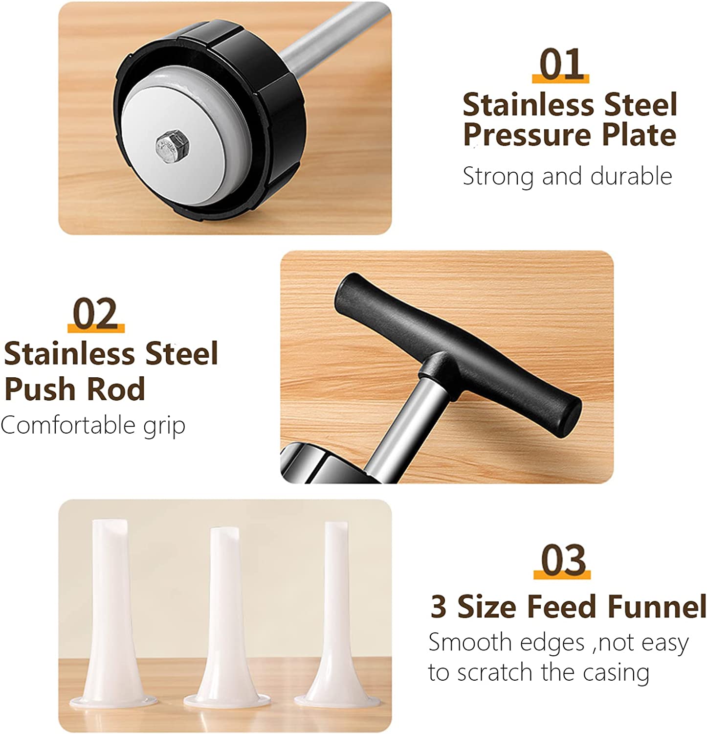 مكبس الممبار والسجق اليدوي ب 3 اقماع بمقاسات مختلفة للتحكم في المقاس
