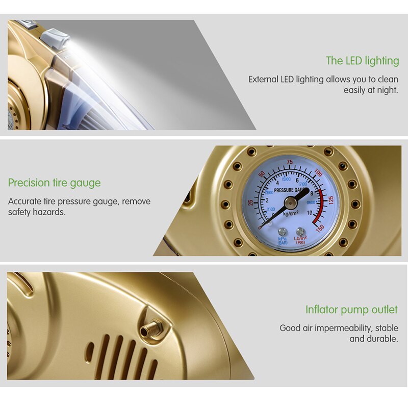 منفاخ كومبريسور بعداد ومكنسة قوية للسيارة وكشاف في جهاز واحد