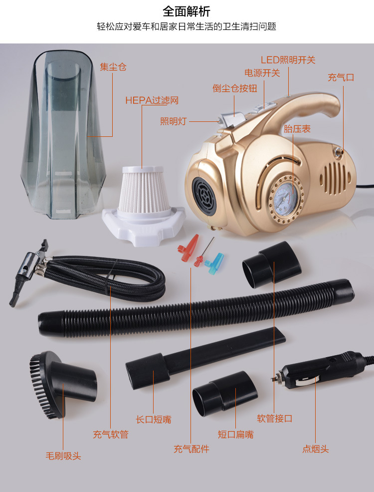 ٤ في 1 مكنسة ومنفاخ كومبريسور واختبار ضغط الهواء وكشاف في جهاز واحد