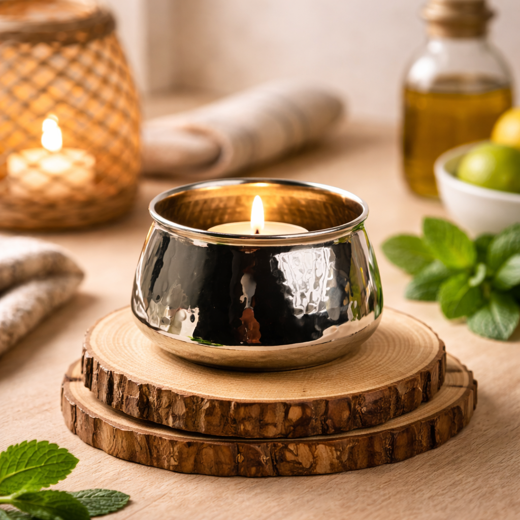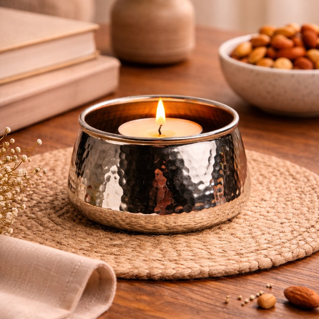 وعاء حامل شموع من النحاس مزخرف للديكور باللون الفضي- 5 * 9 سم