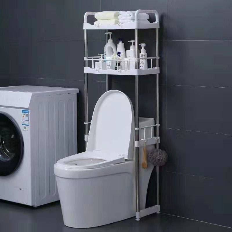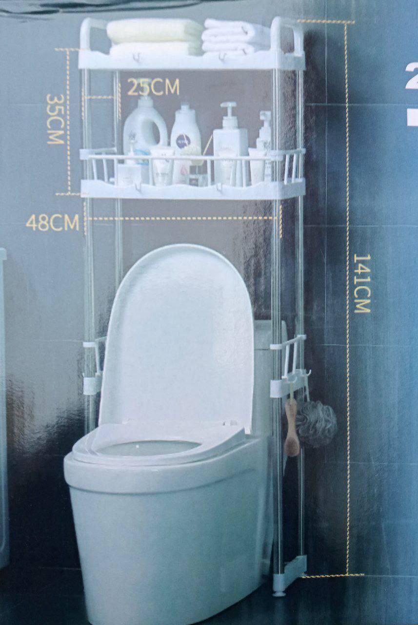استاند منظم وحامل لادوات الحمام فوق التواليت ب ٢ رف وعليقات جانبية متعدد الاستخدامات