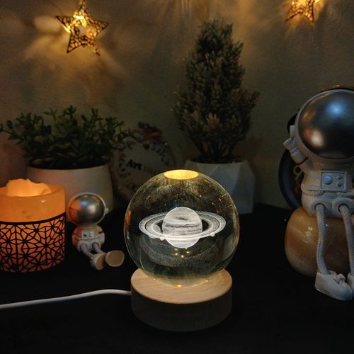بلورة كريستال ثلاثية الابعاد بتصميم كوكب زحل بقاعدة خشبية قابلة للفصل