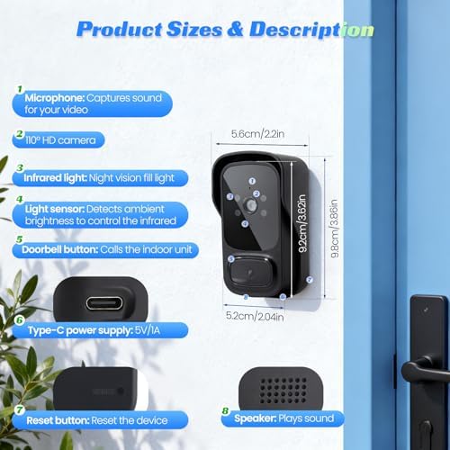 جرس باب لاسلكي مزود بكاميرا عالية الدقة 1080 بكسل 📸