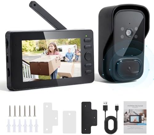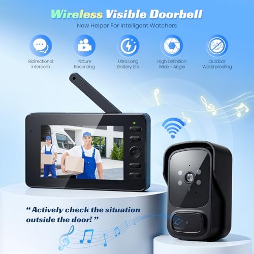 جرس باب لاسلكي بكاميرا وشاشة 4.3 بوصة مع رؤية ليلية وصوت ثنائي الاتجاه لأمان المنزل