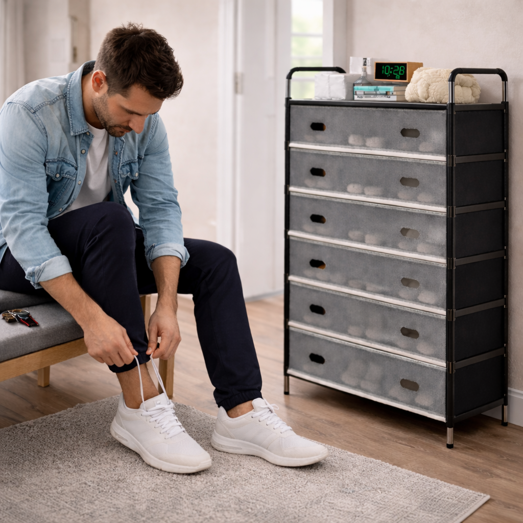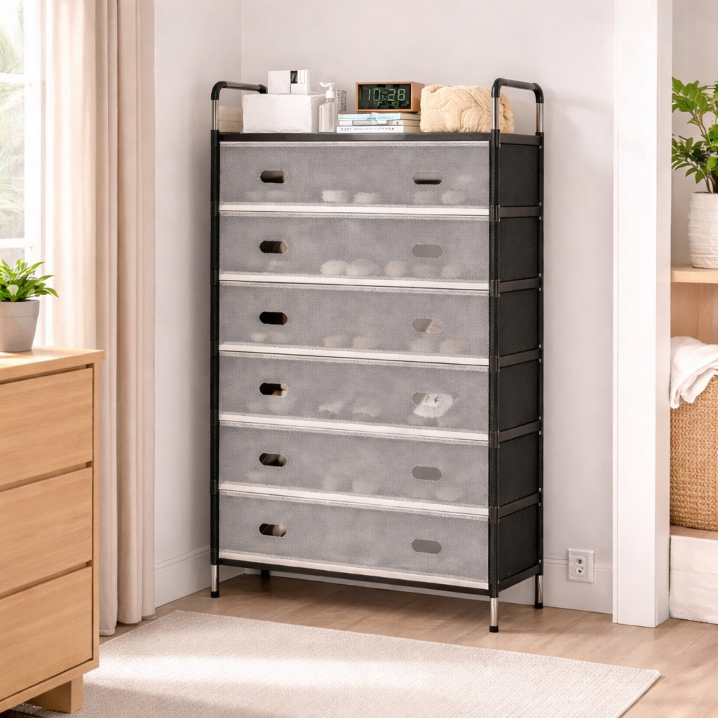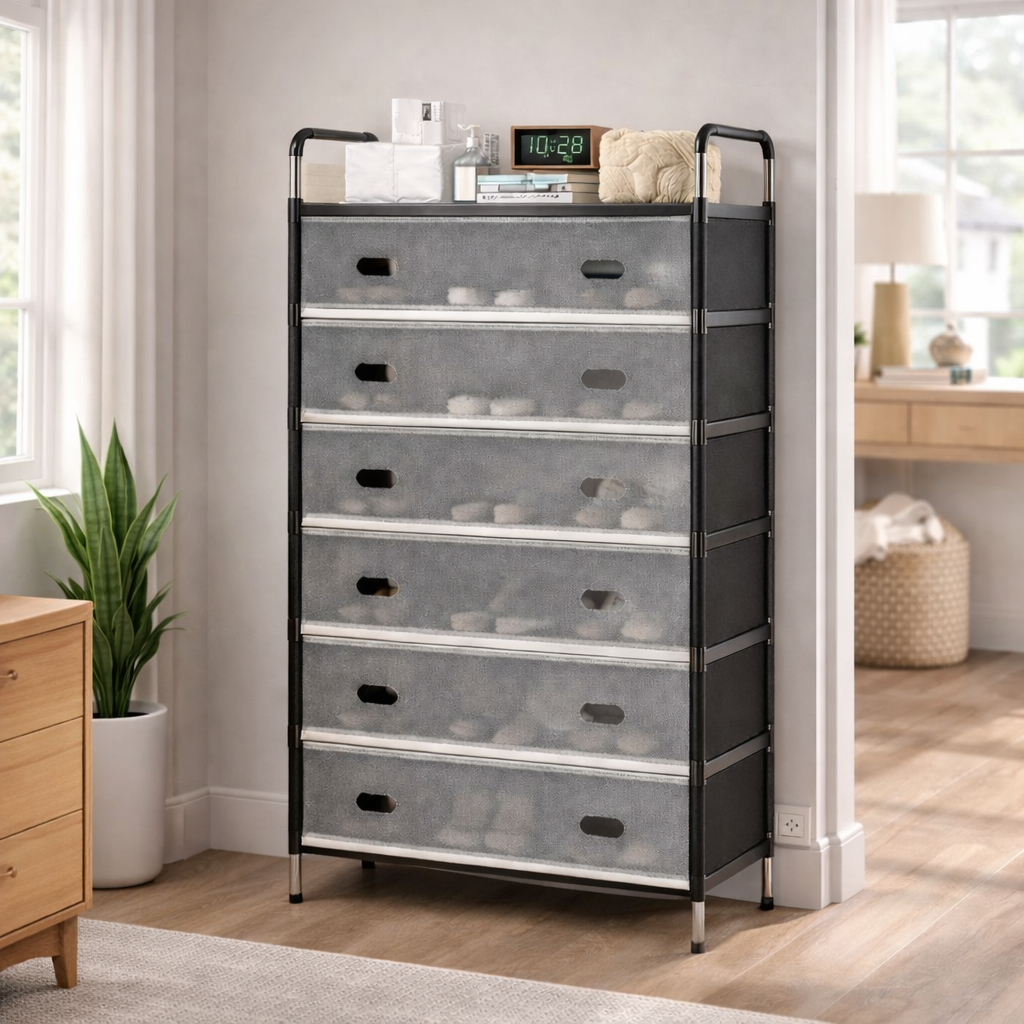 مزودة بـ 6 أرفف / 7 أدوار واسعة تستوعب عدد كبير من الأحذية
