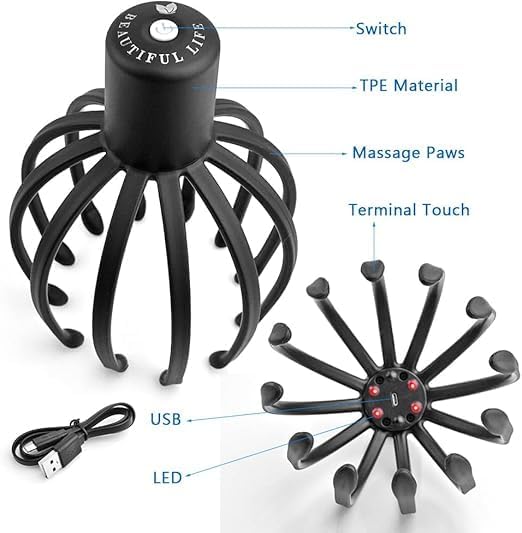 جهاز تدليك فروة الرأس الكهربائي بتصميم اخطبوط ب 3 مستويات للاسترخاء